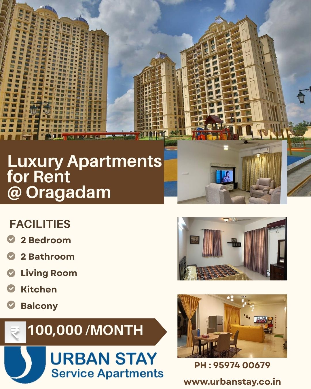 Experience the ultimate in luxury: Urban Stay Service Apartments offering comfortable accommodations and convenient amenities, perfectly suited for both business and leisure travellers. It is nestled in the integrated township of Hiranandani Parks situated in the vicinity of Automobile HUB – Oragadam.